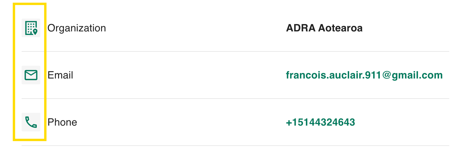Clicking the icons will copy the relevant informations